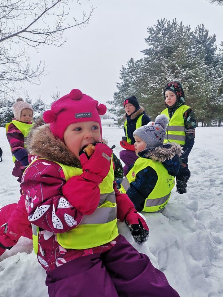 Uut aastat alustas meie lasteaiapere „ Talvise matkaga“ 13. jaanuaril. Iga rühm valis ise kuhu nende matkatee viib. Mesimummid möllasid kergliiklusteel, kus neil toimus kelguralli. Lepatriinud võtsid suuna vanakooli metsa, kus tehti lõket, küpsetati vorsti ja joodi kuuma teed. Oravakesed käisid õpetaja Kaidyl külas. Lapsed said joosta paksu lume sees, joodi teed ja söödi küpsist. Siilikesed jalutasid Võnnu kiriku juurde. Meie lasteaia kõik neli rühma võtsid osa ka Kastre valla poolt korraldatud üritusest „Lumememmede ehitamine“ ja ka häirekeskuse korraldatud fotokonkursist „ Lumest lumele 112“.